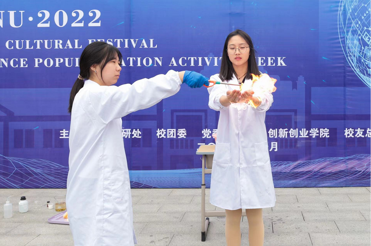 交易汇上,还有化学工程与工艺专业2021级(1)班卢婷婷带来的趣味化学实验——茶水变墨水、大象牙膏、掌中火焰。校团委青年科技创新中心组织的水火箭比赛,引得现场观众鼓掌叫好,将现场气氛推向高潮。