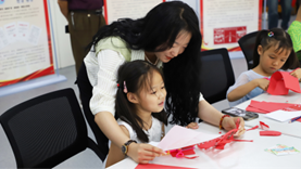 “缠花起源于哪个朝代?”“缠花的用途有哪些?”“请说说对缠花的了解。”……在缠花的教学课堂上,实践团成员之一、体育表演专业2022级的王博愉化身“小老师”,向孩子们提出相关问题。孩子们纷纷举起小手,积极作答。先将卡纸剪成花瓣的图案,再将铜丝固定在纸模上缠绕线,最后将花瓣与花蕊固定在一起,不到半小时,一朵朵精美的缠花便从家长与孩子们的手中诞生。