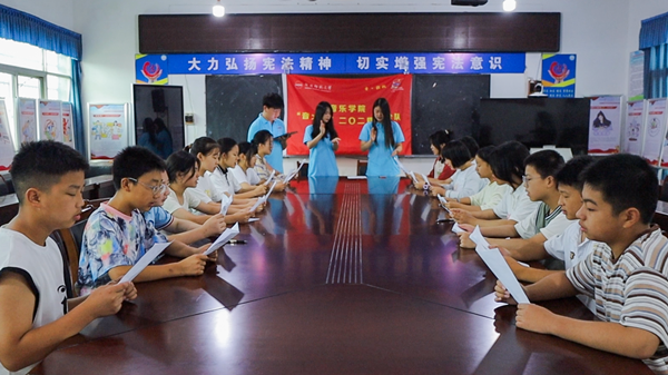 “这场红色主题教育班会,我们尝试在艺术作品的选择和表演上下功夫,在艺术形式中加强红色教育,通过艺术化宣讲,达到寓教于‘乐’、寓教于趣的效果。”实践团队长音乐学专业2022(3)班的李玉祥说。未来,“音为爱”实践团将会继续专注乡镇学生的艺术教育,同时精心筹备爱心送演,以支教启迪艺术,以艺术开展教育、传递温情。(撰稿:学生记者 王忠妮 刘子阳 摄影:学生记者 钱叶彤 张素清 审核:汪洋)