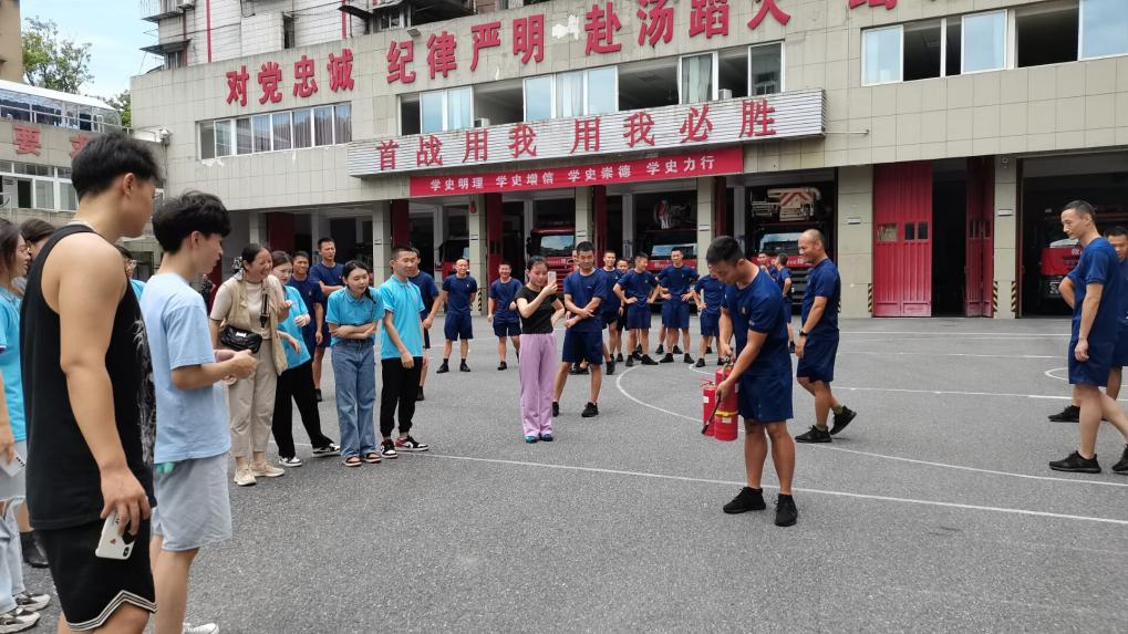 演出结束后,实践团还随消防官兵参观了消防基地,感受他们的训练过程,并进行了消防设施的使用学习。