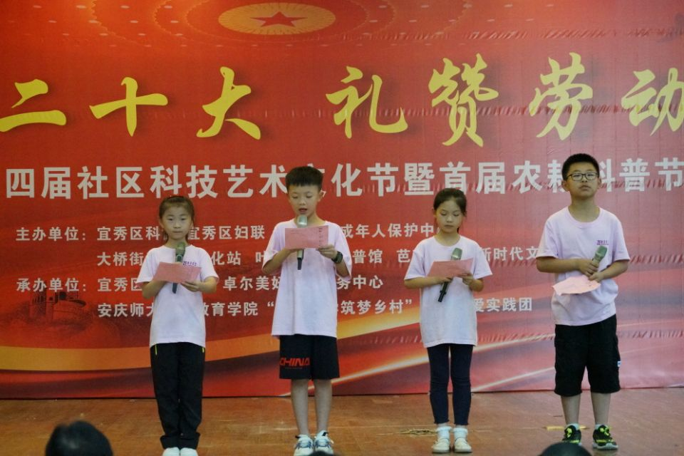 7月15日,由教师教育学院“以劳促学,筑梦乡村”教育关爱暑期“太阳集团tcy8722”实践团参与承办的2022年宜秀区第四届社区科技艺术文化节在宜秀区芭茅巷社区落下帷幕。各主办、承办单位相关负责人参加闭幕式。教师教育学院党委副书记许世平,宜秀区科协主席李愉乐,宜秀区民政局副局长闻斌等领导出席本次文艺汇演暨闭幕式。本次仪式由实践队员程思攀主持。
