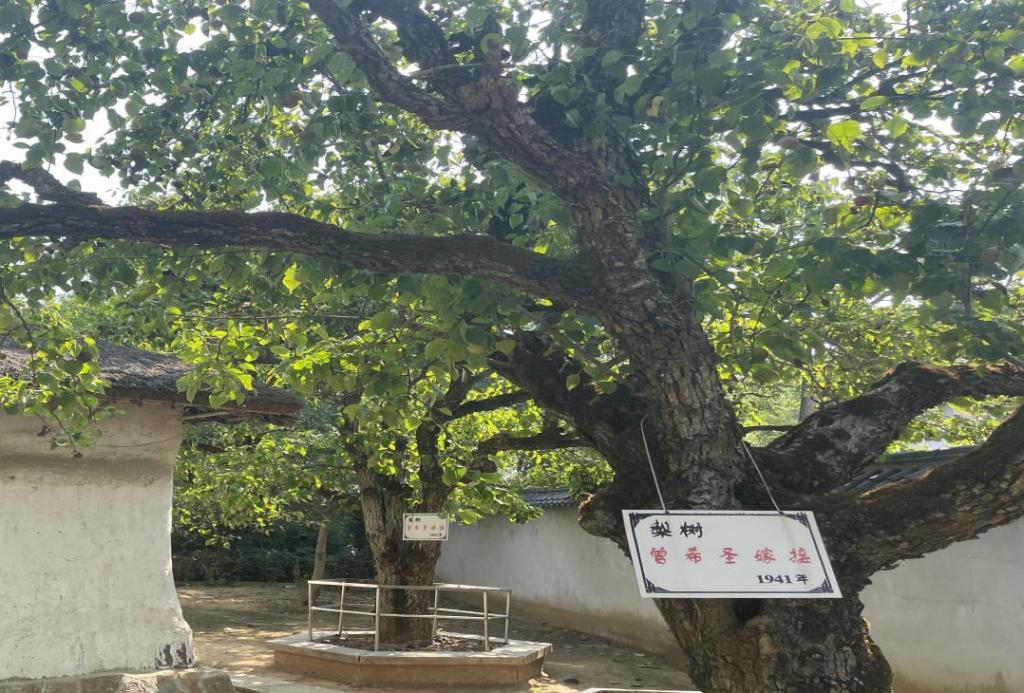 在距离纪念馆不远处,一栋布满岁月痕迹的茅草平房掩映在葱郁的草木间,这里是新四军第七师师部旧址。第七师政委曾希圣嫁接的三颗梨树仍然郁郁葱葱,队员们走近三棵梨树并拍照留念,曾希圣住过的房间和使用过的桌椅都保存完好。在曾圣希等革命先辈的领导下,这里成为了皖江革命根据地的政治军事中心,为民族解放奠定了基础。现如今,新四军第七师纪念馆与七师旧址已成为重要的红色历史教育学习基地。