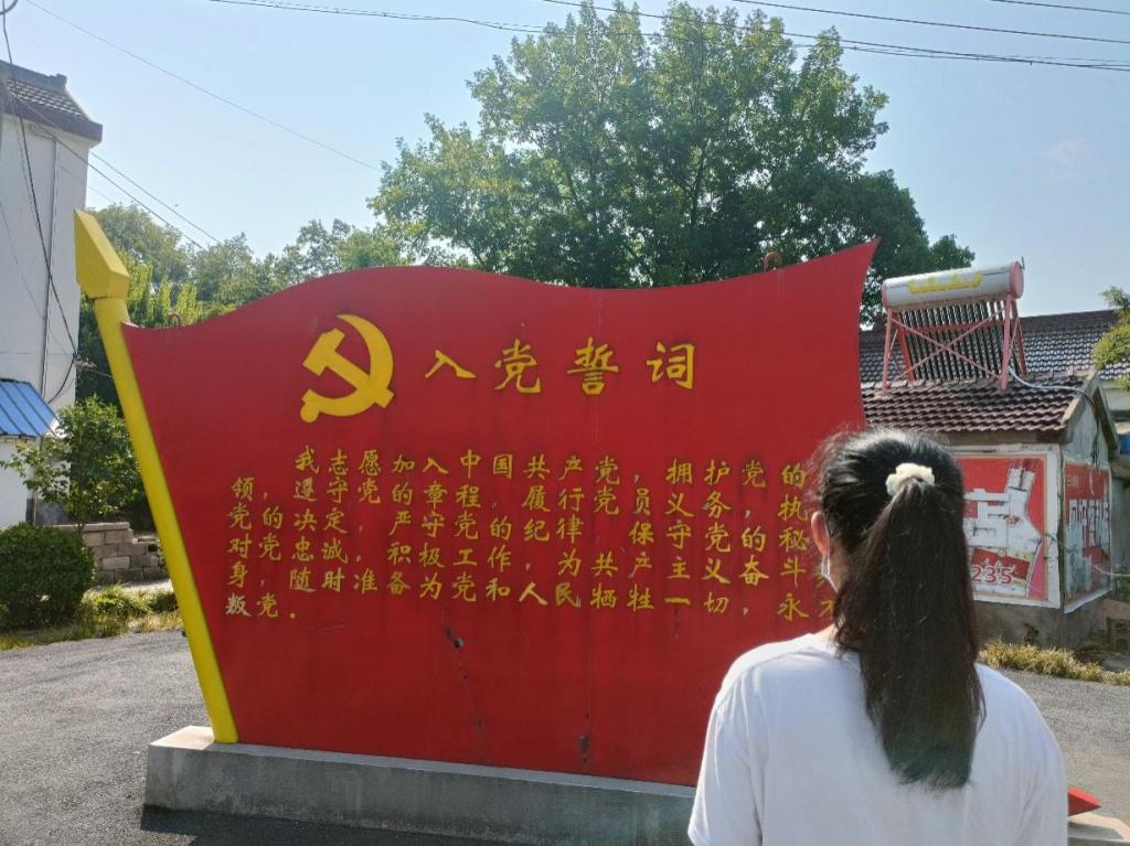 中国共产党的入党誓词,是党员在入党时对党和人民做出的庄严承诺,同时也是党员必须遵守的行为准则。新四军七师师部旧址门外的党旗在太阳下格外耀眼,队员们认真学习了入党誓词内容。作为共青团员,他们是中国共产党的后备军,也会时刻以一名党员的标准来严格要求自己。