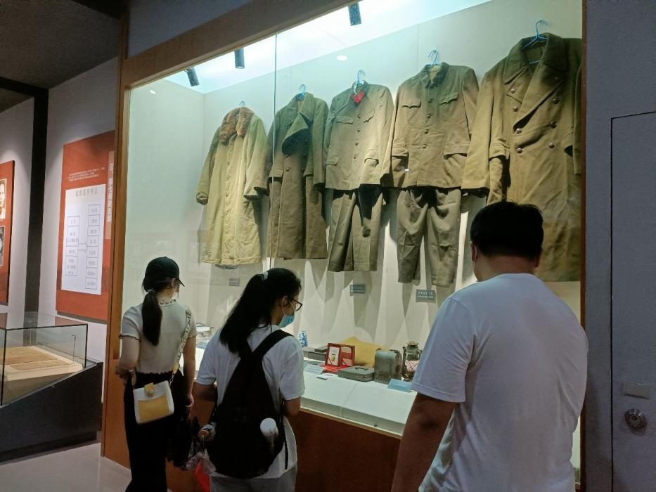 无为市红庙镇海云村在抗日战争时期是建立皖江抗日根据地的新四军七师司令部所在地。庄严肃穆的纪念馆,像一座历史丰碑,记载着新四军第七师和英勇的皖江儿女在革命战争年代顽强不屈的斗争历史。馆内设有“牢记历史勿忘国耻”“皖江抗日起怒潮”“血泊中诞生的新四军第七师”“第七师驰骋皖江”等八个展厅,团队在馆内参观了第七师当年使用过及缴获的武器、地图、日用品等近千件实物,并仔细观看了纪录片,重温当年新四军七师从建立到发展的历程,感受革命先烈在艰苦环境中永不放弃的崇高信念。
