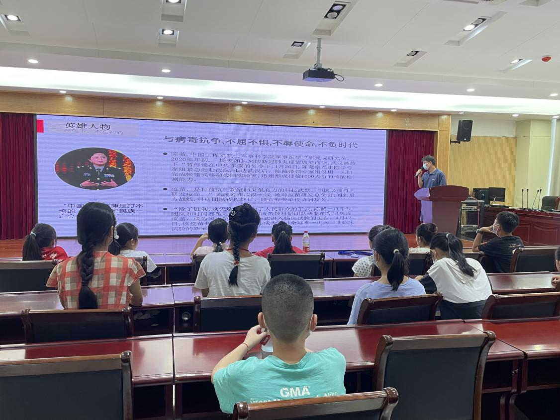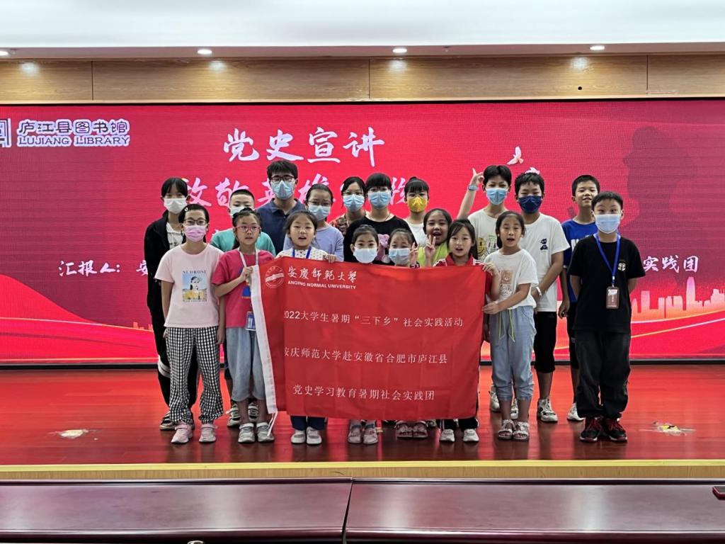 “中华民族在党的领导下已经从风雨飘摇的一艘小船成长为乘风破浪的东方巨轮,未来将继续在历史的长河中披荆斩棘,逆流而上!”8月9日,庐江县图书馆的三楼报告厅内掌声不断,原来是安庆师大传媒学院“赴庐江县党史学习教育暑期实践团”在进行“喜迎二十大,致敬英雄人物”党史宣讲活动。20余名学生听众认真聆听着实践团成员讲述的故事,与英雄人物来了场别开生面的“对话”。