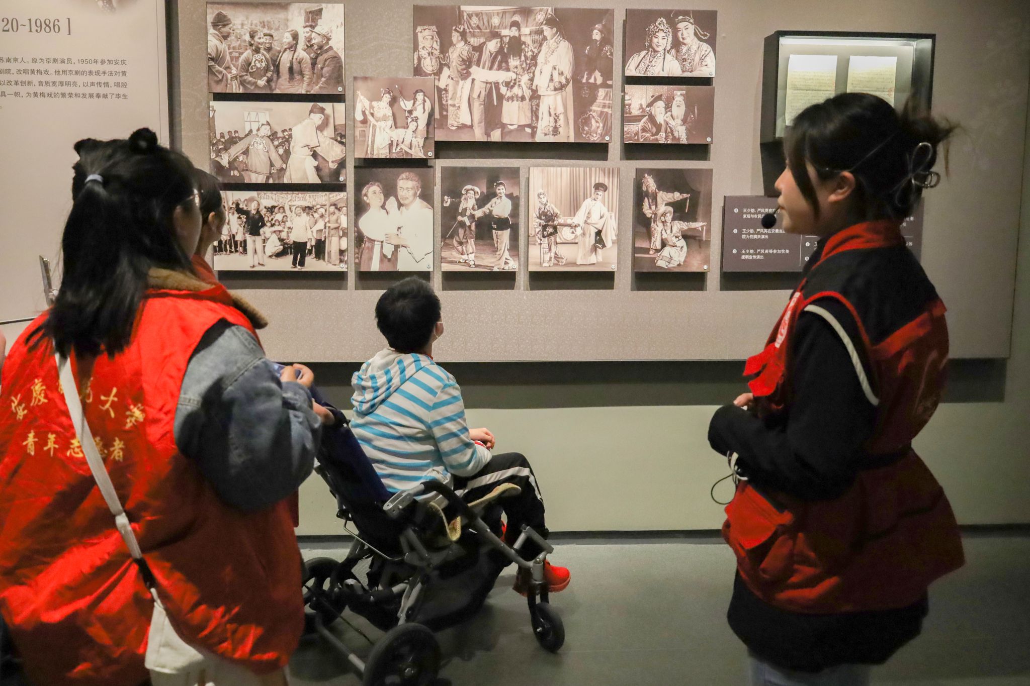 “它有多少年历史了?”“这些真精美呀!”在博物馆工作人员的讲解下,小悦悦(化名)牵着身边志愿者的手,透过橱窗近距离感受历史的温度,面对陈列的历史文物,她时不时和志愿者分享自己的感受。当看到黄梅戏陈列馆时,兴奋的小云(化名)还即兴唱了一小段黄梅戏。