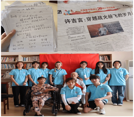 从拍摄证件照到与老人耐心交谈,再到手写祝福送老人,团队成员在实践中深入了解老人的心理状态,一点点拉近与老人心与心的距离;从宣讲健康知识到免费测量血压,再到和老人一起跳早操,“青春暖夕阳”团队将关爱老人身心健康落到实处,一步步让健康生活理念“送”入老人心中。