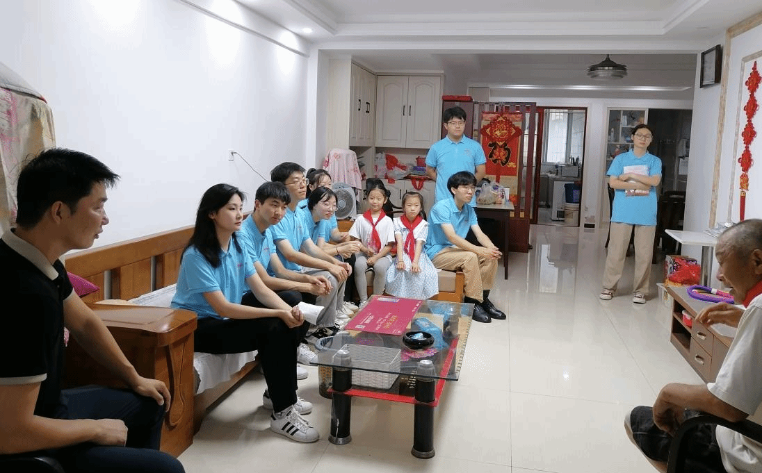 课程中还特别安排了记者采访课,选拔表现积极、听课认真的小朋友组建起儿童小记者团,与实践团成员共同慰问退伍老兵。“沈学仕出生于1951年5月,1970年12月入伍,1976年3月退伍……”实践团成员提前向小记者们讲解退伍老兵爷爷的革命事迹,并一同前往沈老家中走访慰问。