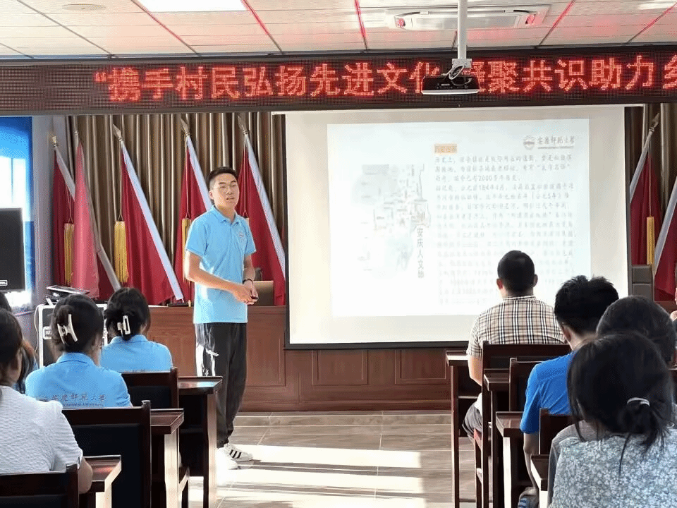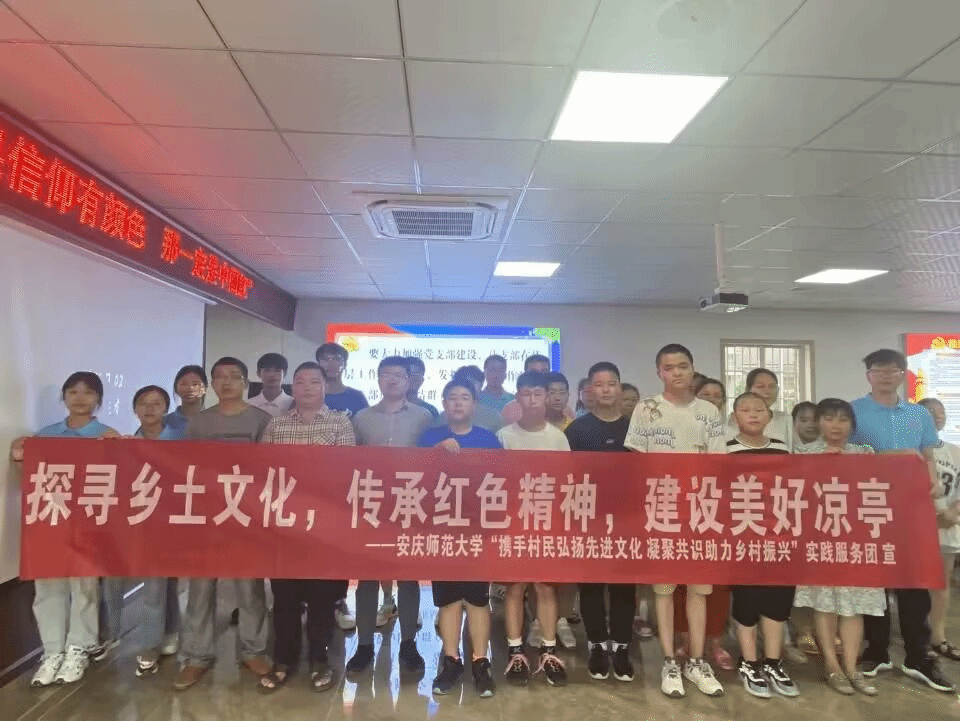 近日,马克思主义学院“携手村民弘扬先进文化,凝聚共识助力乡村振兴”暑期社会实践团赴宿松县凉亭镇枫驿村,在村委会开展“探寻乡土文化,传承红色精神,建设美好凉亭”主题宣讲活动。