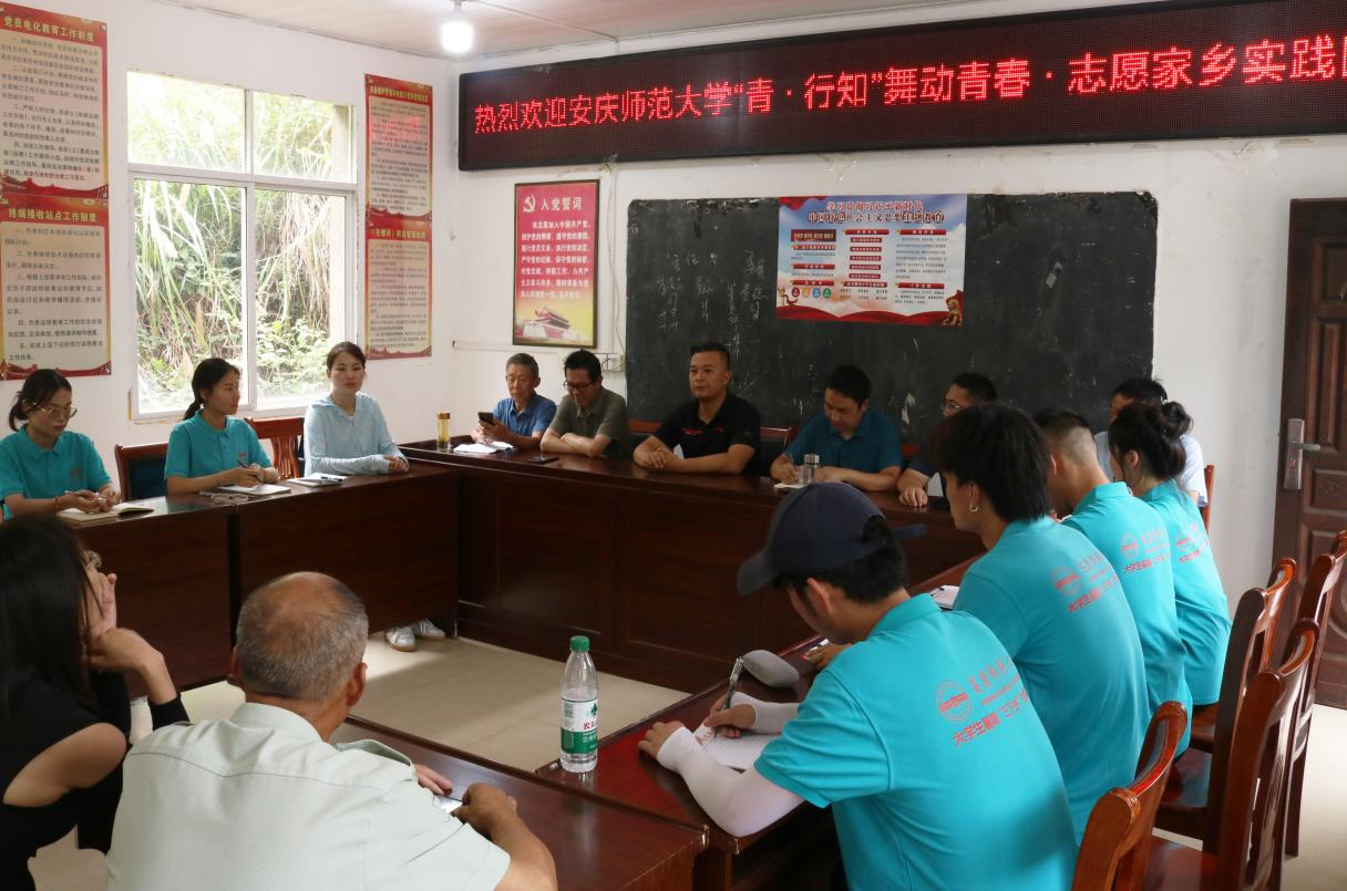 实践团指导教师方芳向到场的西冲村村委会工作人员介绍了队伍的人员构成、任务分工和具体活动内容,并对过去十年安庆师大学子在此开展“太阳集团tcy8722”实践所取得的成就进行了介绍。随后,村委会领导就团队生活需求和活动开展形式与指导老师和队员进行了讨论和交流。