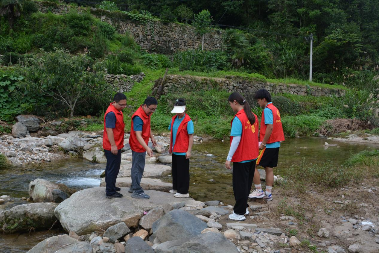 身穿红马甲的志愿者“兵分两路”,一路志愿者手拿防溺水宣传单,用易懂的语言和生动的演示,将水上安全知识传授给村民,帮助他们提升安全意识。另一路,湍急的溪流边,志愿者时而站立,时而屈身,实地勘察村中水域情况,检查岸边的防护设施和警示标识是否发生损坏。