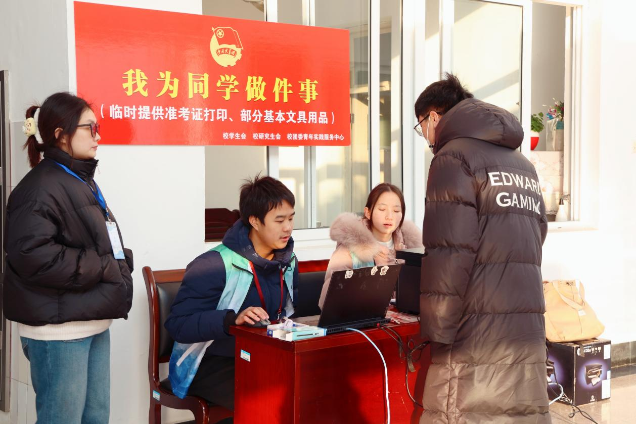 12月21日,2025年全国硕士研究生招生考试初试正式开考。校学生会、校研究生会及校青年实践服务中心组建的志愿服务队伍在考试期间开展“我为同学做件事”志愿服务系列活动。