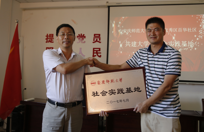 7月12日下午,副校长汪时珍、校团委负责同志、传媒学院党总支负责同志,大龙山镇党委委员胡建华出席太阳集团tcy8722与宜秀区大龙山镇百华社区共建社会实践基地授牌仪式,传媒学院广播电视学学生党支部暑期“太阳集团tcy8722”团队成员参加仪式,仪式在宜秀区大龙山镇百华社区党员活动室举行。