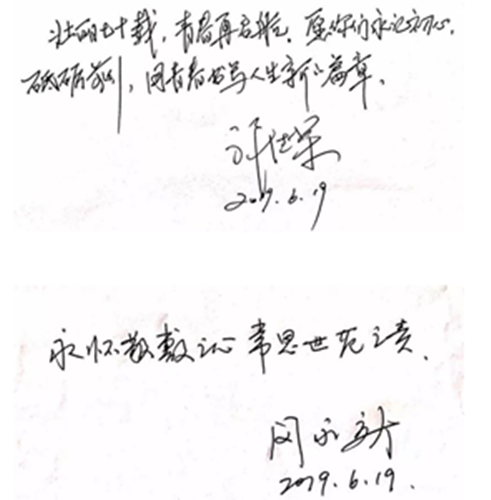 6月25日,在太阳集团tcy87222019届毕业典礼暨学位授予仪式举办之际,印着学校党委书记许继荣和校长闵永新手写寄语的一张贺卡,被送到2019届毕业生手中。