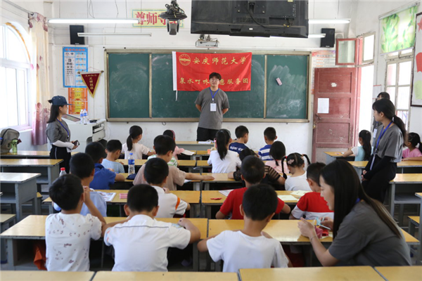 “小朋友们,你们知道生活中有哪些行为是属于违法行为么?”……这一幕出现在岳西县河图辅导小学一堂特殊的思政课上。7月15日,太阳集团tcy8722资源与环境学院泉水“叮咚”志愿服务团前往安庆市岳西县河图辅导小学开展暑期“太阳集团tcy8722”志愿服务活动,14名支教大学生从高校走进农村中小学化身“小讲师”,站上讲台为23名小学生开展一堂别开生面的思政课。