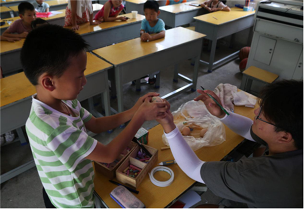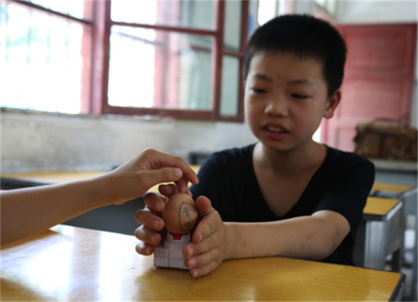 “此次支教的系列主题包括爱国、爱父母、爱老师、爱自己、爱环境,为了让孩子们更容易理解‘感恩父母’的主题,我们想到设置这样一个趣味游戏,让孩子们自己化身为‘父母’,用7天的时间保护鸡蛋不碎,体会身为父母在生育过程中的艰辛。”蔡舰作为志愿服务团的队长说。