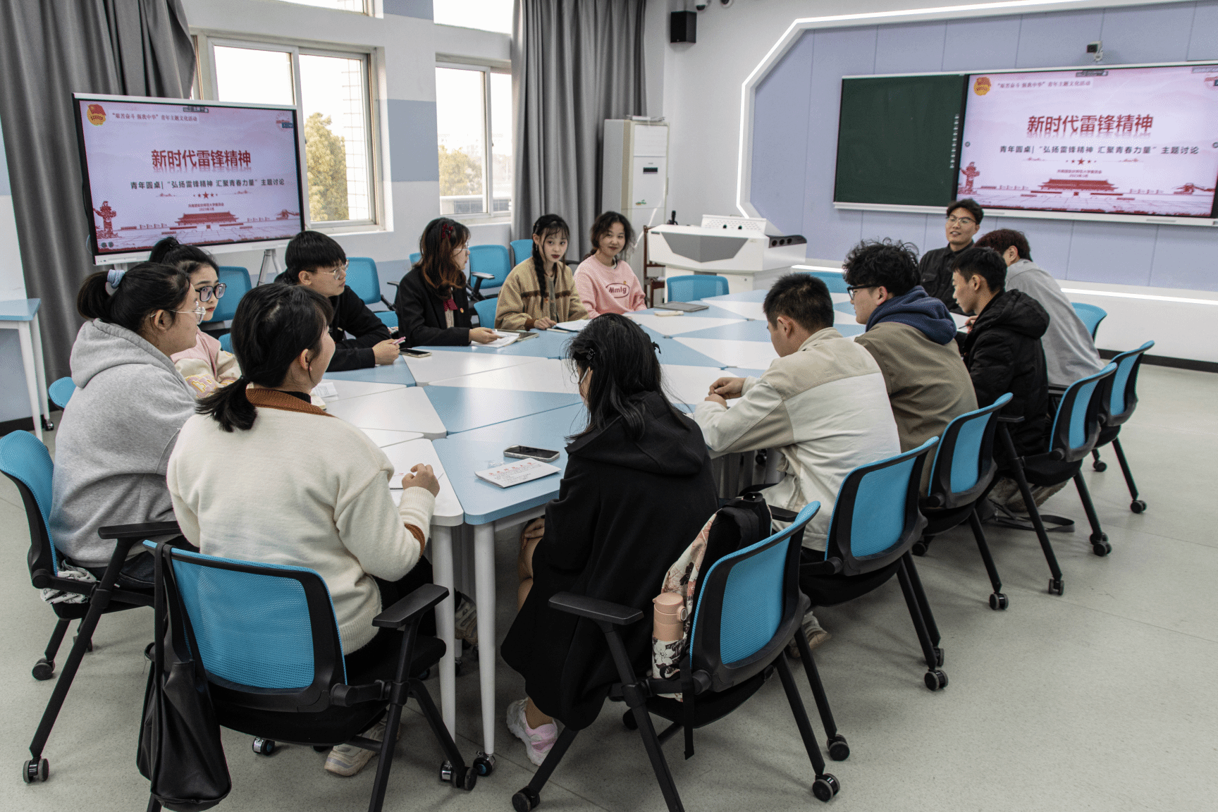 在毛泽东等老一辈革命家为雷锋同志题词60周年之际,3月3日,校团委组织开展“艰苦奋斗,强国有我”青年圆桌会,13位本专科生、研究生代表围坐深谈,在思辩、释疑、洞悟中深入学习雷锋精神的时代内涵。