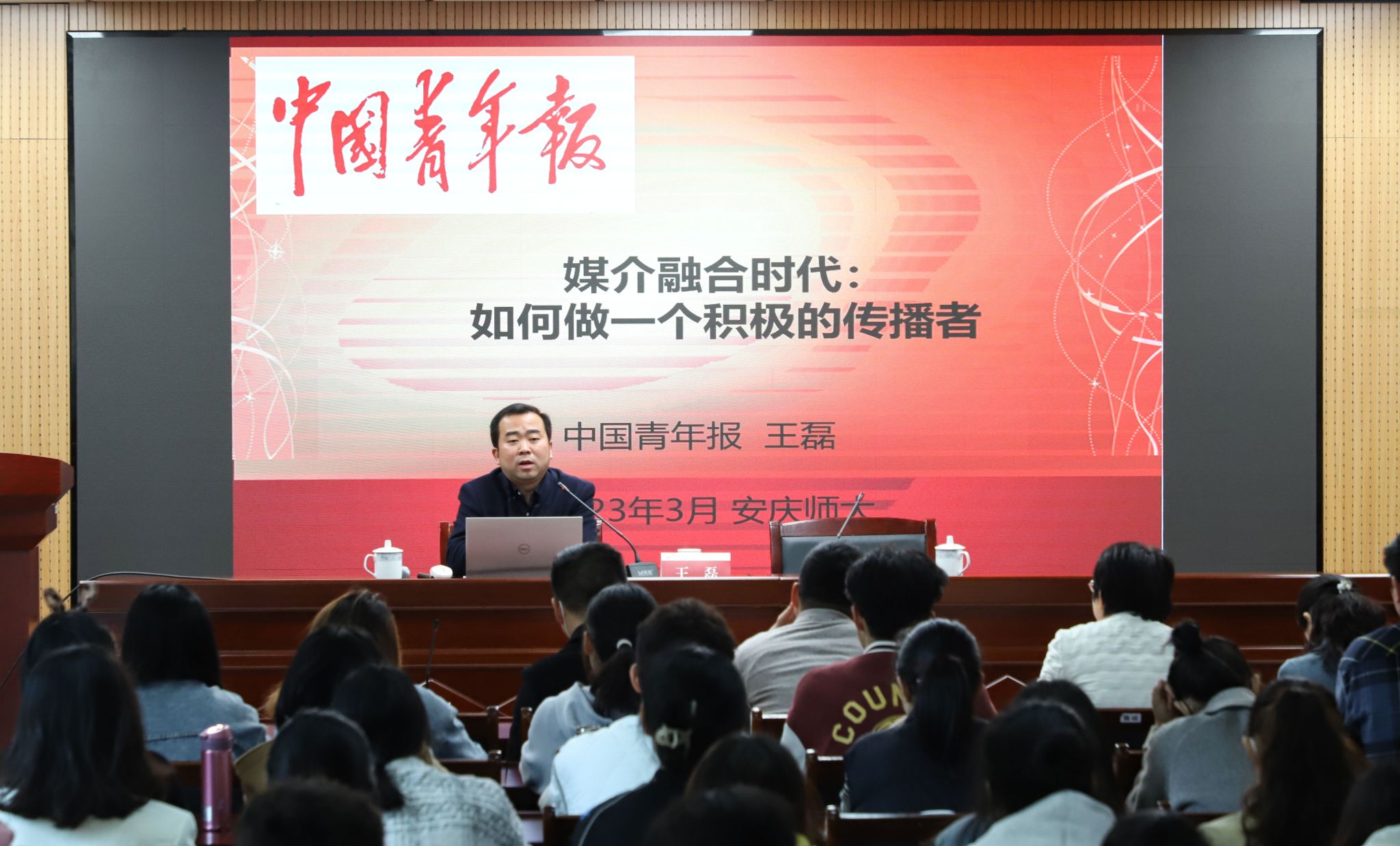 3月14日,校团委举办第三期团青讲坛,邀请中国新闻奖二等奖获得者,中国青年报安徽记者站站长、高级记者王磊开展《媒介融合时代:如何做一个积极的传播者》专题讲座。讲座由校团委副书记方蓬主持,各学院团委书记、团属新闻宣传工作骨干参加讲座。