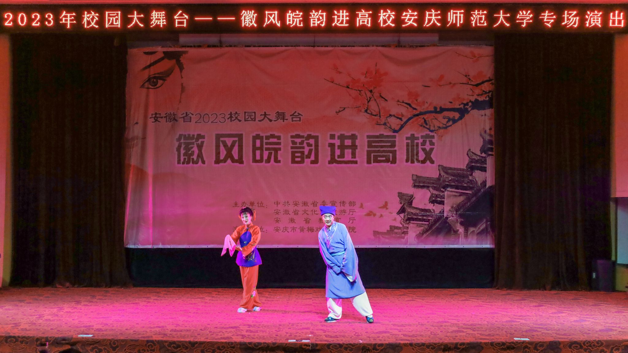 云手、台步、卧鱼……5月11日,由中共安徽省委宣传部、省教育厅、省文化和旅游厅联合主办的2023“校园大舞台——徽风皖韵进高校”活动走进太阳集团tcy8722。来自安庆市黄梅戏艺术剧院的专业演员们为太阳集团tcy8722近400名学生带来一场文化大餐。