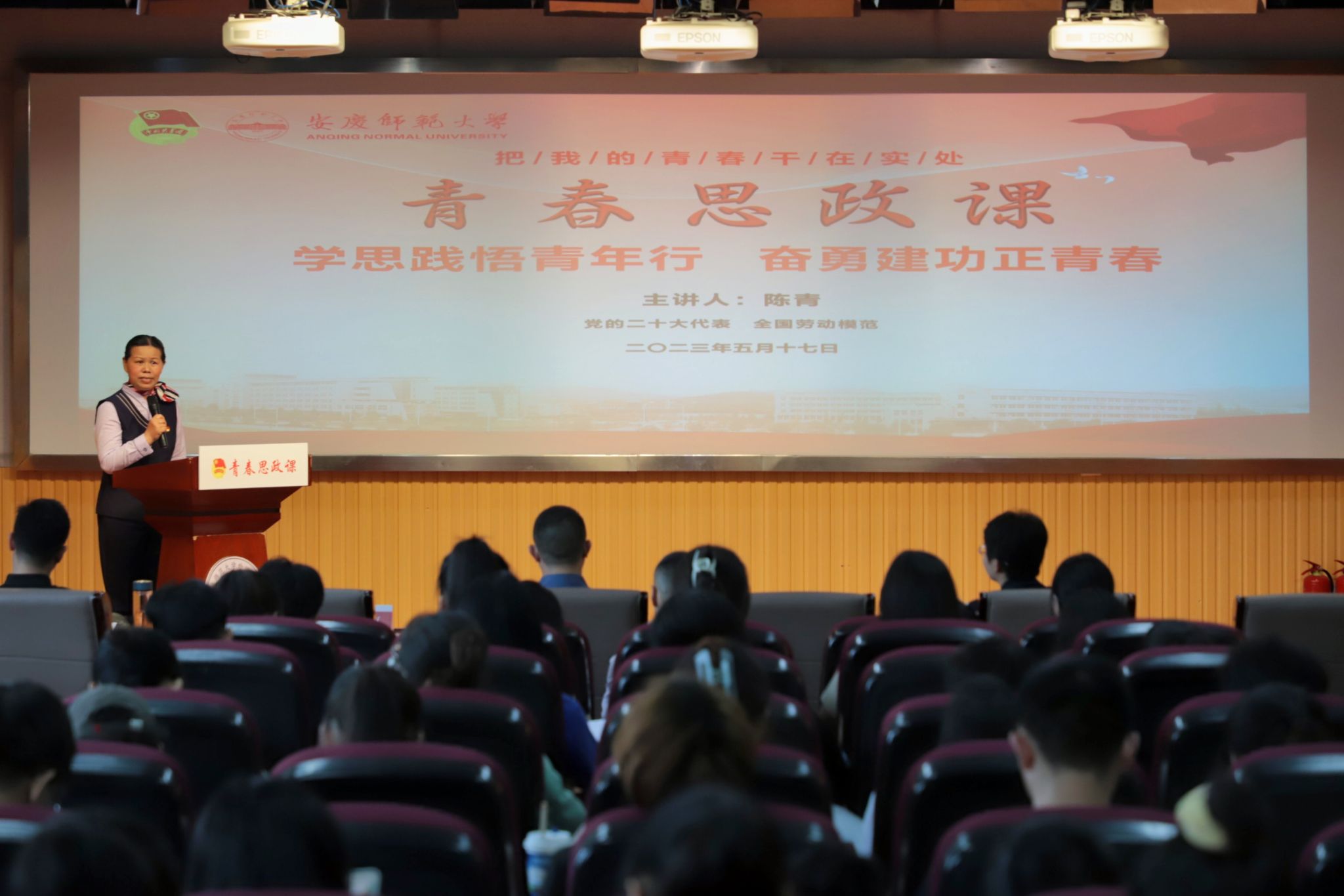 5月17日,党的二十大代表、全国劳动模范陈青走进太阳集团tcy8722,主讲“把我的青春干在实处”青春思政课。合安高速南分中心党支部书记黄庆,校团委副书记方蓬、石磊与校院两级学生会主席团成员、校第十四期“青马班”学员和“青年新声”宣讲团成员同上一堂课。