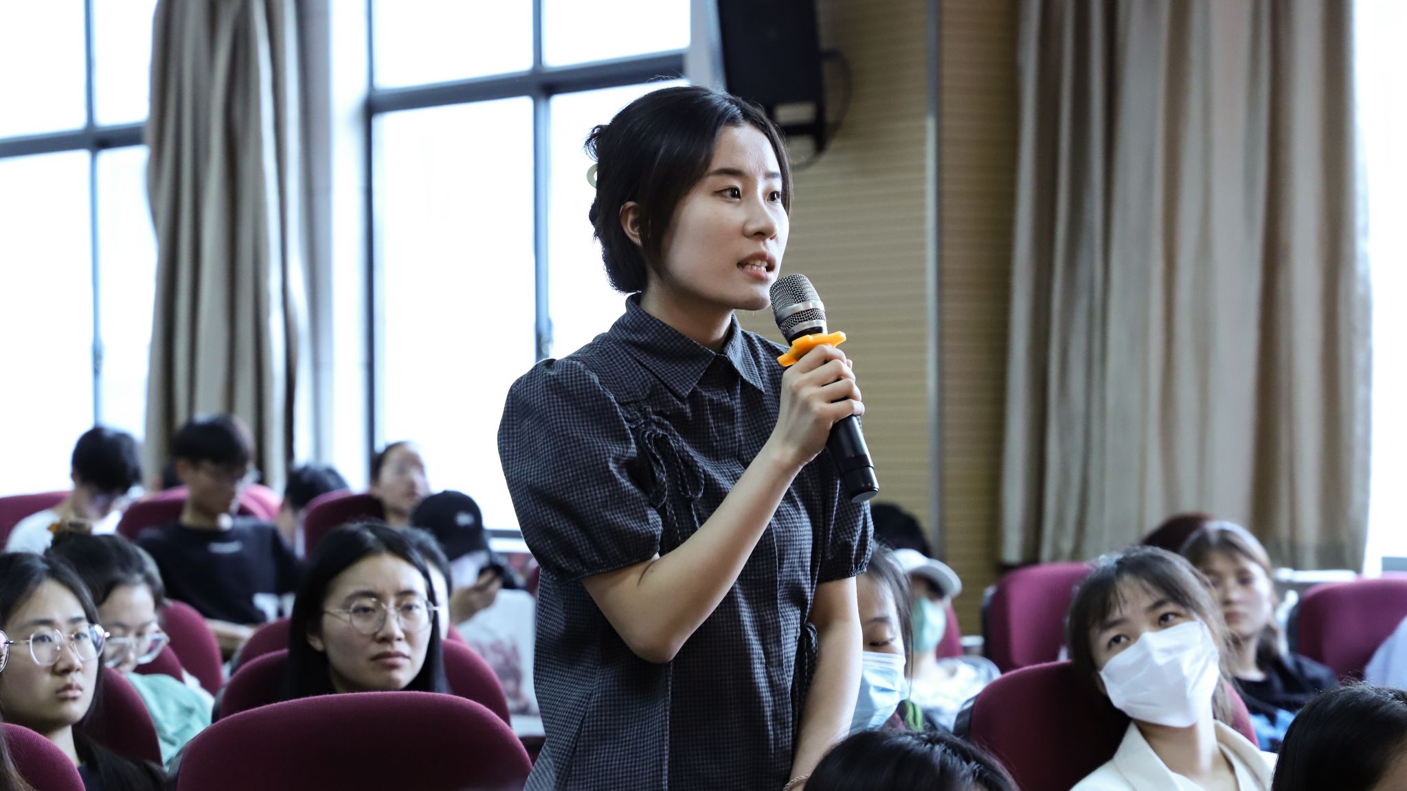 在互动环节,针对同学的提问——“青年学生如何在平凡的岗位写出不平凡的故事”,陈青认为,“不管从事什么岗位,要做到干一行、爱一行、专一行、精一行。真心去对待工作,它也会对你报以微笑。当然,我们更需要时刻谨记习近平总书记对新时代好青年的殷切期望,把自己的青春、自己的理想同党和国家事业紧密结合在一起,落在实处。”