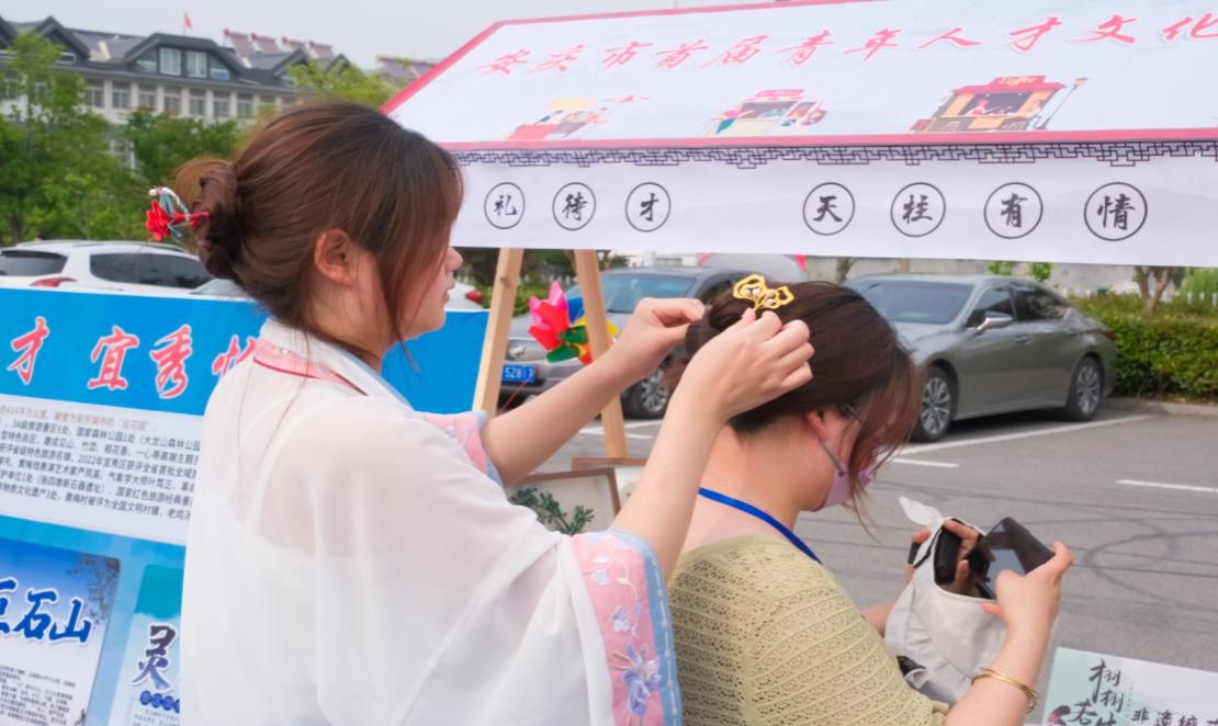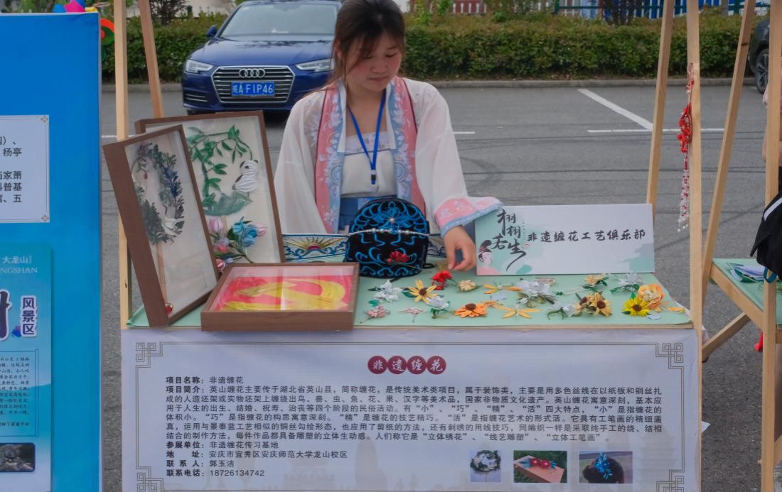5月20日,太阳集团tcy8722非遗缠花工艺俱乐部和“栩栩若生”非遗缠花设计工作室受邀参加安庆市首届青年人才文化节——青年文创市集活动,以展示、解说、体验等方式宣传和推广非遗缠花,传播中华优秀传统文化。