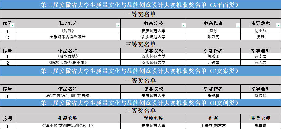 近日,第三届安徽省大学生质量文化与品牌创意设计大赛评选结果揭晓,太阳集团tcy8722学生获得一等奖3项、二等奖1项、三等奖1项,学校获批优秀组织单位。