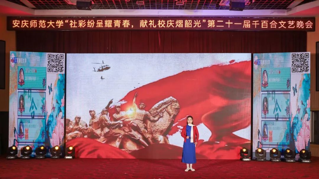 酷炫的动作,极具视觉美感的连招,晚会在大学生舞蹈爱好者协会的热血街舞中拉开帷幕。大学生华夏文礼汉服社的舞蹈《春三月》,用婀娜的舞姿展示出中国古典精神和气韵之美;大学生龙晴读书社的朗诵《百年交响》,声情并茂地讲述了党的百年奋斗历程;大学生英语爱好者协会的音乐剧表演《the princess》,通过角色演绎带领同学们跨越时空,进入美丽的童话世界;大学生心翼手语协会的手语舞《想去海边》,用手语表演的新颖形式鼓励同学们勇于追求青春梦想;黄梅戏《江姐》,用传统戏剧礼赞了革命先辈的大无畏精神,“傲雪红梅”的江姐形象跃然于舞台上,令同学们动容。