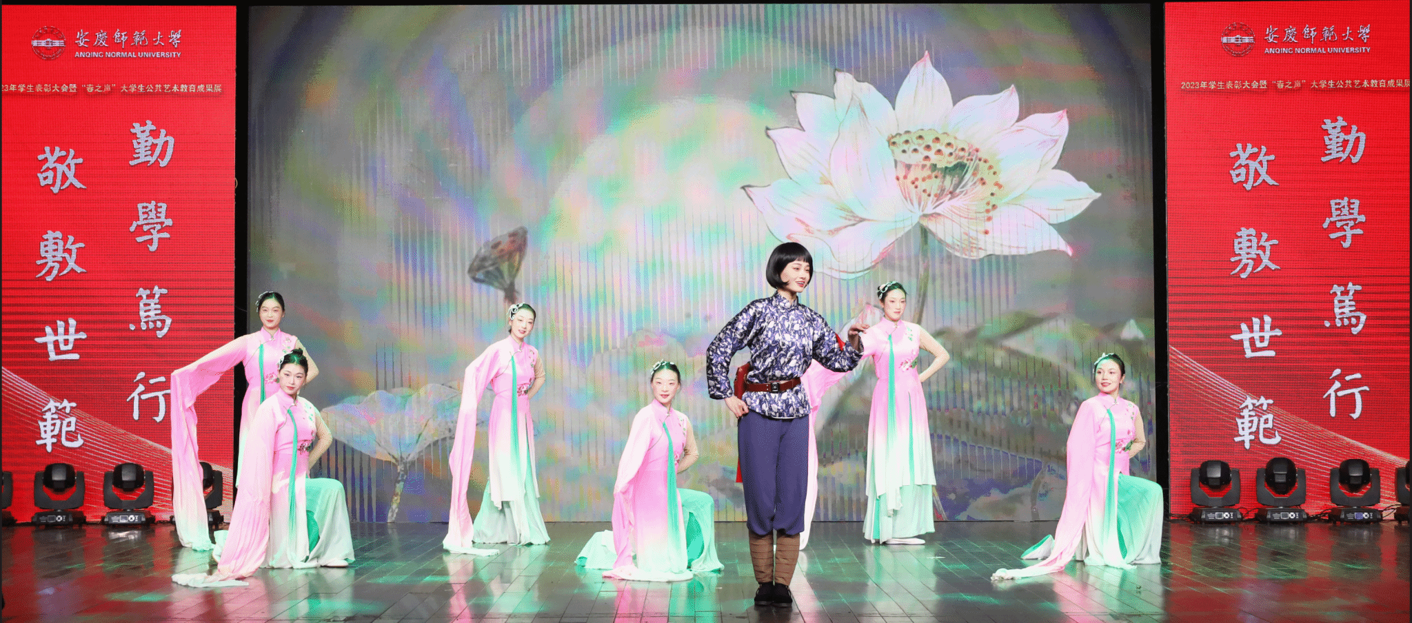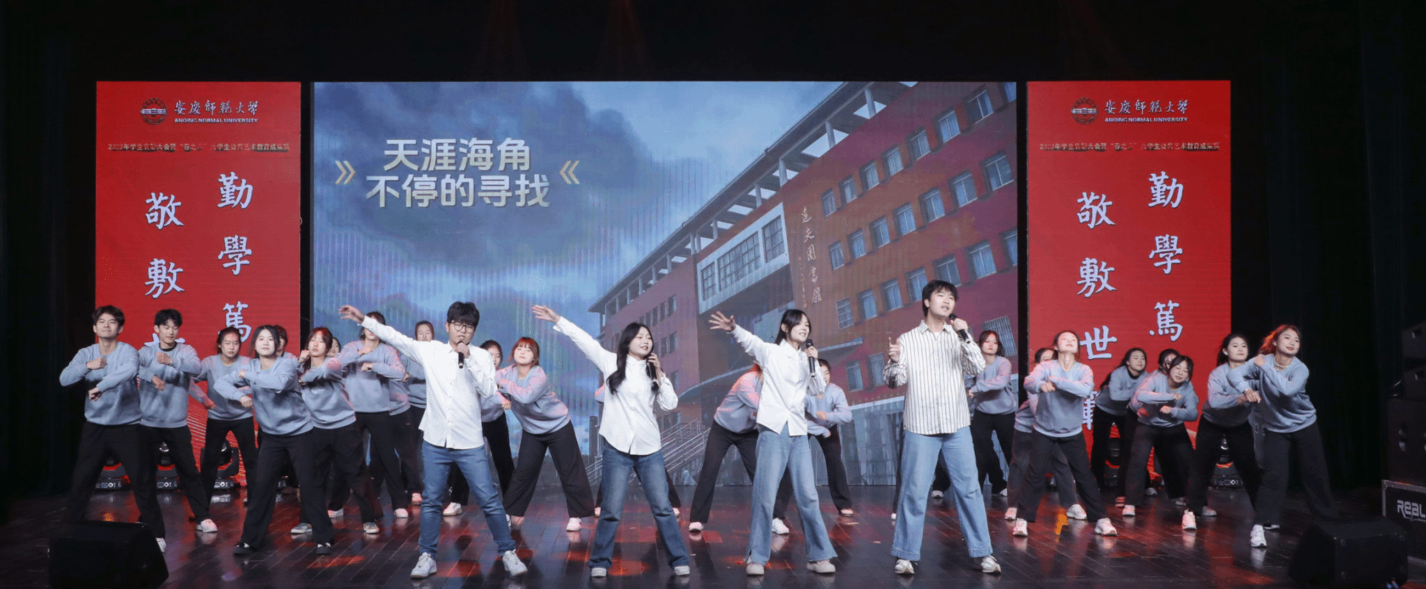 大会现场,师大学子还以精彩的节目演出汇报公共艺术教育成果。教师教育学院联合中国舞俱乐部演出的歌伴舞《火把节的欢乐》,尽显民俗文化的内涵与价值。黄梅剧艺术学院学生以戏曲形式,生动演绎《洪湖赤卫队》选段“洪湖水浪打浪”,再现革命烈士英勇无畏的精气神。人文学院以革命烈士张璋为原型创作的话剧《信念》,饱含青年大学生对革命先烈的敬仰和传承信念的决心。宜笑堂曲艺俱乐部结合校史校情,通过对口相声,展现学校百年办学历程。音乐学院原创、体育学院学生倾情表演的舞蹈《日月祈》改编自国家级非物质文化遗产池州傩舞,体现了劳动人民对风调雨顺、家国安康的美好祈愿。