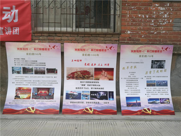 为进一步增强社区居民对党史国史的了解,宣讲团在社区通过展板宣传和宣传单发放等形式,设置“光辉岁月-我们的那些年”爱国主义教育宣传廊,对居民进行“五四精神”、“厉害了,我的国”等爱党爱国宣传教育,社区居民纷纷驻足观看,其中不乏有小学生和家长。其中一位家长对孩子说:“历史是最好的教科书,了解国家的历史,才能更好成长!”同时,宣讲团在社区开展多场爱国主义电影展播活动,寓教于乐丰富社区文化,居民们积极参加,气氛热烈。