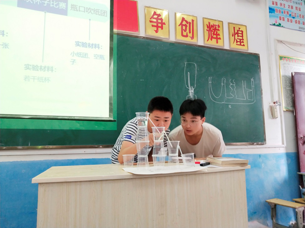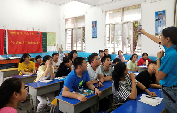 7月7日至7月13日,物理与电气工程学院“怀爱暖芽”助教服务队在怀宁县腊树初中开展了以“情系留守儿童,助力乡村教育”为主题的精准关爱志愿服务活动。大学生志愿者们发挥专业特色以及个人专长,给该校28名暑期学生带来了趣味盎然且意义深远的七天。