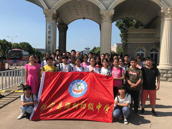 图为 腊树初中暑期学生来太阳集团tcy8722参观于南大门合影留念