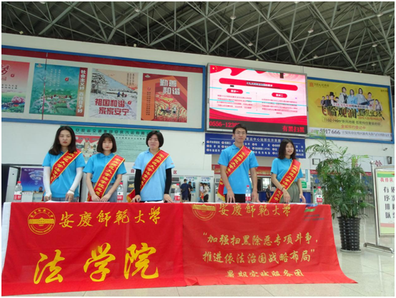 此次实践服务活动围绕将法律专业知识与扫黑除恶斗争紧密结合起来,旨在贯彻落实“加强扫黑除恶斗争,推进依法治国战略布局”活动主题。高温酷暑下,志愿者们穿梭在安庆周边地区,走街串巷,开展“扫黑除恶”普法宣传活动。他们的足迹遍布燎原社区、中心社区、大龙山镇政府、客运中心站、菱湖社区、周边乡村、大桥街道、大观区法院、怀宁县司法所、怀宁县法治文化公园等数十个地点。通过发放“扫黑除恶”宣传单、举办“扫黑除恶”知识讲座、现场讲解“扫黑除恶”相关知识等方式,号召广大人民群众加入“扫黑除恶”斗争中,更大程度上普及了法律知识、增强了法治观念、提升了法律意识。活动内容丰富、形式多样,特别是为乡村法治宣传及“助力乡村振兴战略”注入了新的血液,为新时代乡村振兴注入了法治正能量。