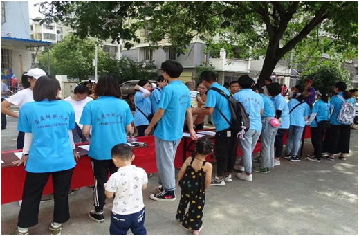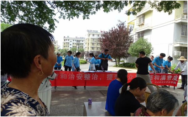 7月11日,法治宣讲团成员与资源环境学院环保知识宣讲团在吾悦广场共同开展了“携环保知识,建美丽中国”实践活动,结合“垃圾分类”的社会热点问题,引申出环境行政纠纷的处理程序和最新《中华人民共和国环境保护法》的相关规定,使普法活动与人们生活相结合,让群众看到中国法律对公众环境权益保护的坚决态度。7月14日,宣讲团成员前往龙山花苑小区,通过设立法律咨询台、发放宣传资料、悬挂横幅、普法问卷调查等方式,向大家分析公民的基本权利和义务,让社区居民能够听得懂、记得住、用得上。成员们还向居民们详细解答了农民耕地利用和社区建设(公共厕所,菜市场等社区基础设施建设)等问题,充分调动了居民参与的积极性。