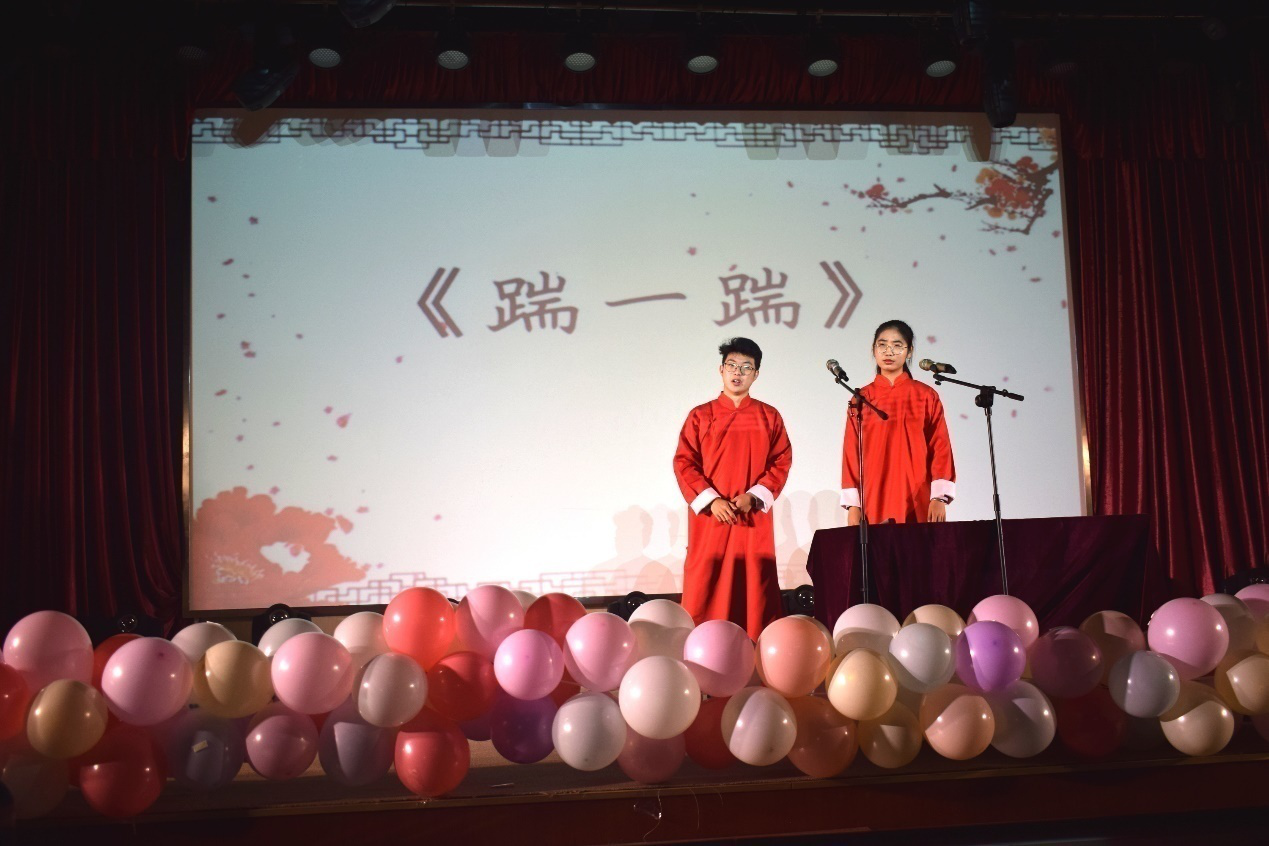 晚会节目丰富多彩,展现出学子们的青春激情。开场舞《power up》用热情奔放的舞姿拉开了迎新晚会的序幕。相声《踹一踹》风趣幽默,演员用丰富的肢体动作和诙谐的语言引来现场笑声不断。话剧《红》以家国情怀为基点,演绎了英雄前辈者在艰苦岁月中对革命不懈坚持的故事。古典舞《盛世》,几位丽人轻转赤裙,折纤腰,送微步,皓腕举以轻羽。她们时散时聚,时转时立,一静一动之间展现出汉唐文化的神韵,将整场晚会氛围推向高潮。歌曲《一身诗意千寻瀑》和《骄傲的少年》迥异的风格给观众带来典雅空灵与轻快悠扬的不同美感体验。