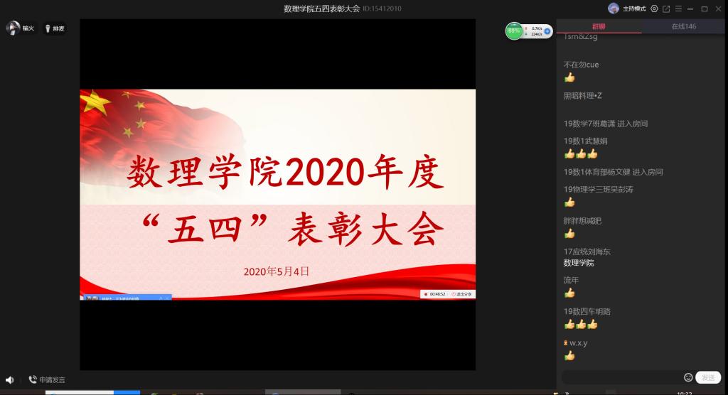 5月4日上午10点,数理学院团委在线上召开了“五四”青年表彰大会。院党委副书记何骏,院团委负责人、学生会全体成员、获奖同学以及各班学生代表参加了本次会议。