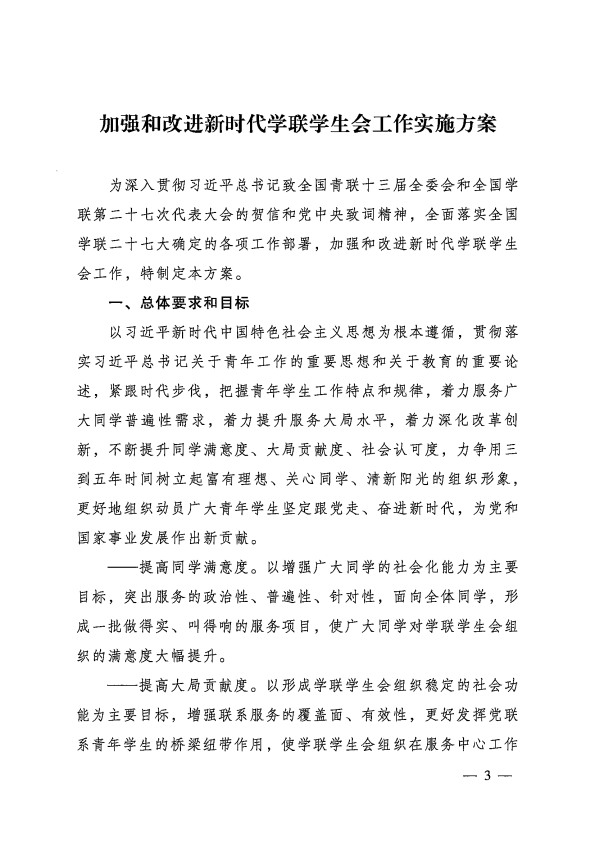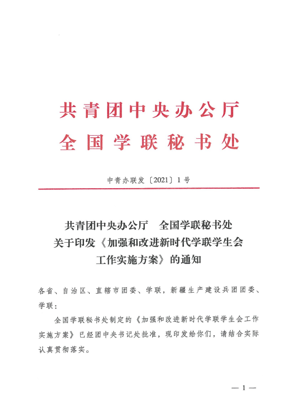 共青团中央办公厅全国学联秘书处关于印发《加强和改进新时代学联学生会工作实施方案》的通知