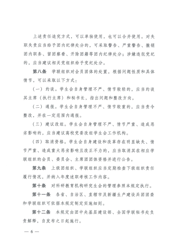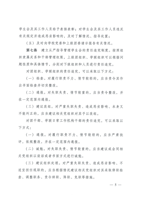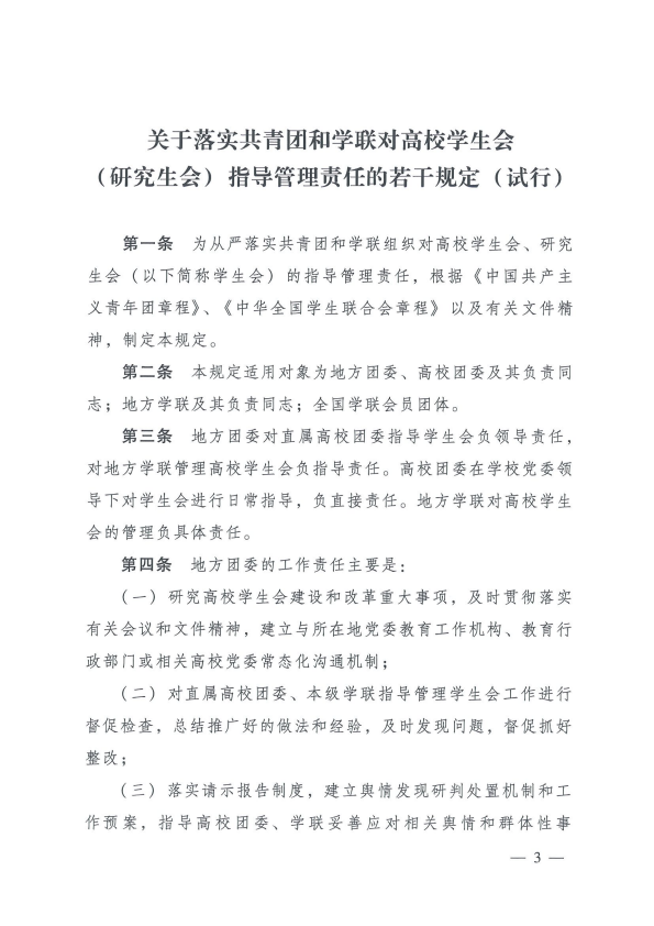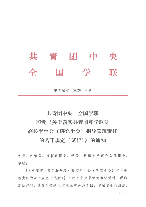 共青团中央全国学联印发《关于落实共青团和学联对高校学生会( 研究生会)指导管理责任的若干规定(试行)》的通知